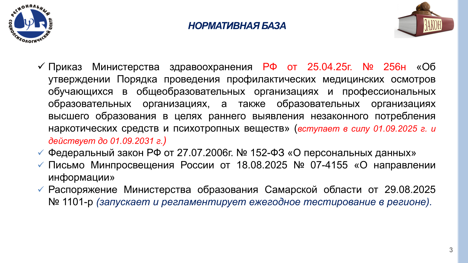 «Ежегодно проводится всероссийское тестирование социально значимых характеристик личности современных школьников и студентов. Тестированию подлежат обучающиеся всех без исключения общеобразовательных организаций и профессиональных образовательных организаций, а также образовательных организаций высшего образования. Результаты тестирования позволяют определять, как наиболее сильные и ресурсные особенности личности обучающихся, так и особенности поведения в стрессовой ситуации, различные формы рискового поведения. Анализ результатов тестирования поможет организовать профилактические мероприятия для обеспечения психологического благополучия личности обучающихся, оказать им своевременную психолого-педагогическую помощь и поддержку».