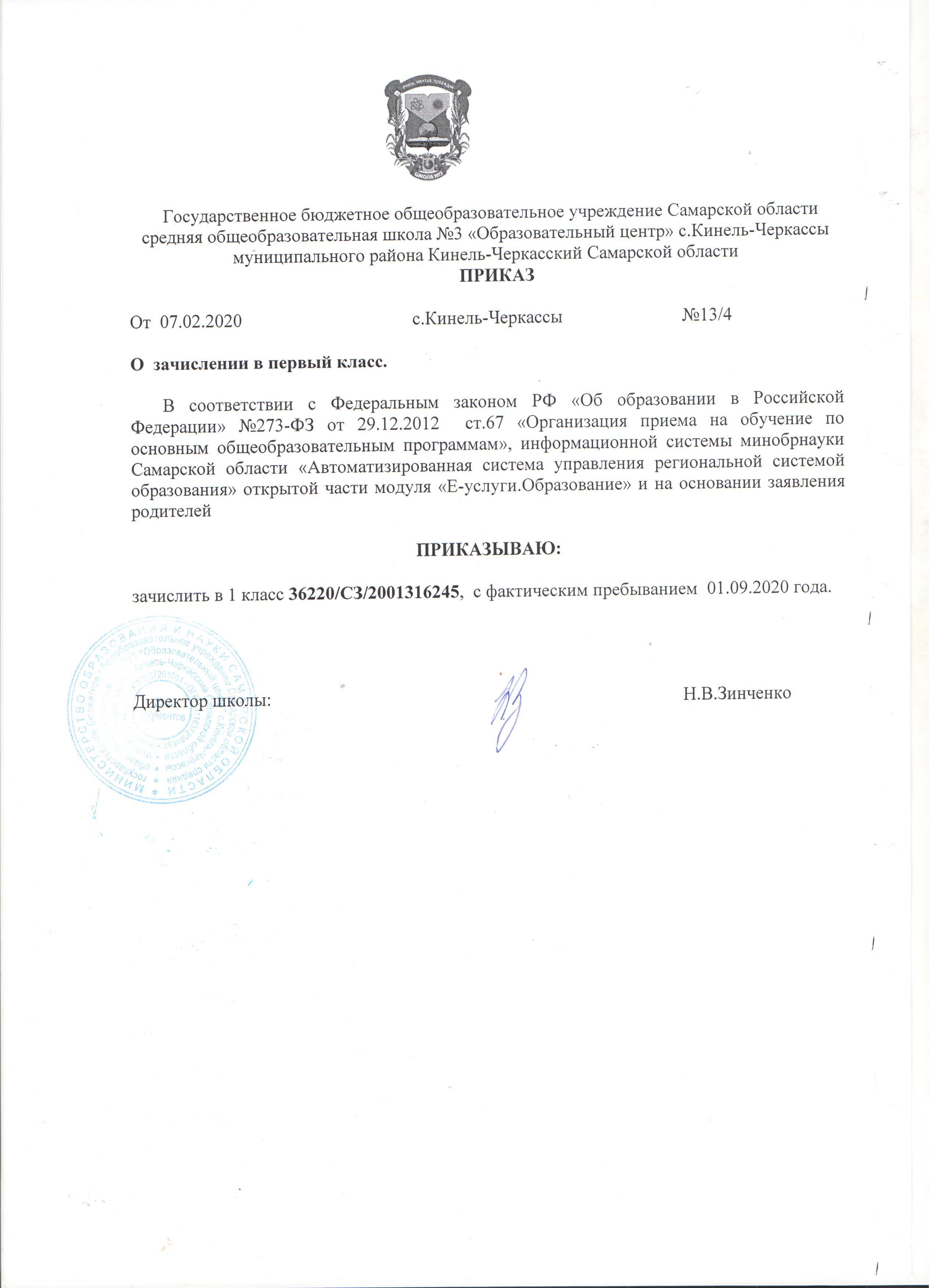 Приказ о зачислении в 1 класс доп. 1